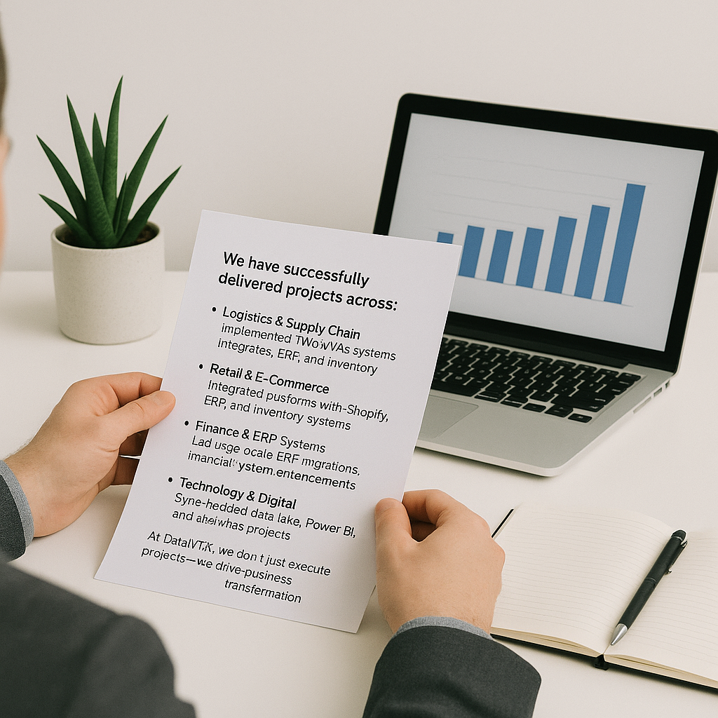 At DataNYX, we have successfully led and delivered complex projects across industries such as logistics, retail, e-commerce, finance, and ERP systems. Our expertise in project management, system integrations, process optimisation, and management consulting enables businesses to streamline operations, improve efficiency, and achieve long-term success.